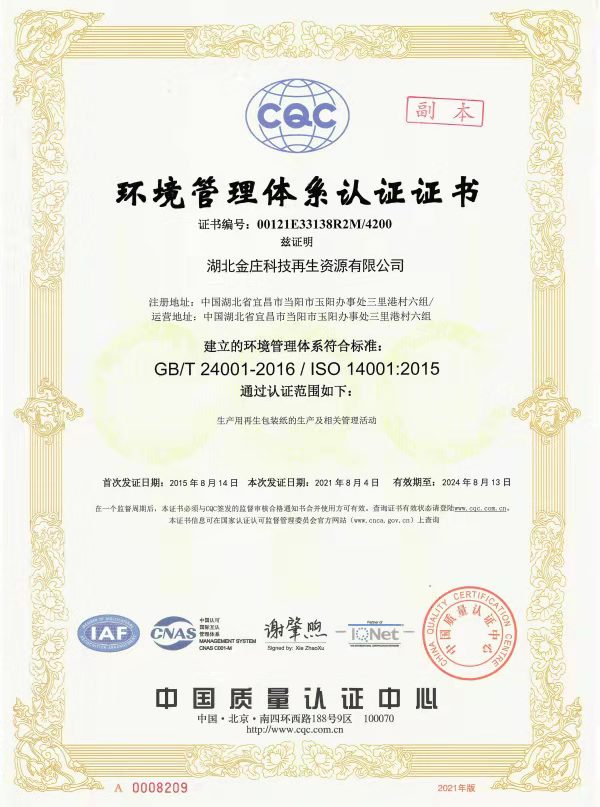 湖北金莊科技再生資源有限公司是以生產(chǎn)再生包裝紙和為工業(yè)園區(qū)集中供熱的資源綜合利用加工服務(wù)型企業(yè)。公司位于當(dāng)陽(yáng)市金橋工業(yè)園,成立于2000年,注冊(cè)資本15486.72萬(wàn)元,占地面積近400畝,現(xiàn)有員工500余人。 自成立以來(lái),公司始終堅(jiān)持“誠(chéng)信、創(chuàng)新、共贏(yíng)”的經(jīng)營(yíng)理念,努力踐行“資源再生綜合利用,堅(jiān)持綠色能源可持續(xù)發(fā)展,以為社會(huì)提供綠色可持續(xù)穩(wěn)定適用的產(chǎn)品為己任”的經(jīng)營(yíng)方針。